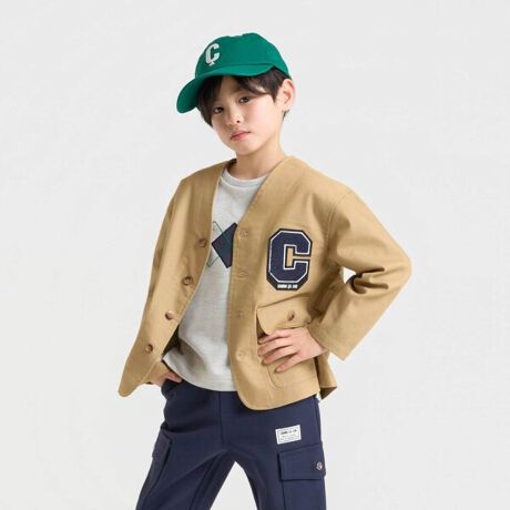 胸元のワッペンがクラシカルで、どこか英国調な雰囲気を漂わせます。