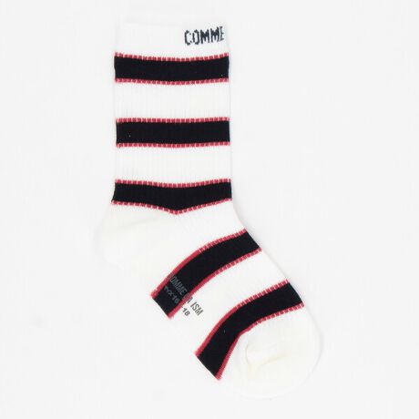 [型番:98-83QO11-206]《デザイン》ボーダーのクルーソックスです。トラッドを感じさせるボーダーの配色使いと、履き口リブのロゴがデザインポイントです。シンプルなデザインなので、男女問わず使っていただけます。13〜15cmのみ、足底にはクリアロゴのすべりどめがついています。すべりどめに色が付いているように見える場合がありますがソックスの色が透けて見えているものなので問題はありません。《素材》伸縮性に優れたソックスに適した糸を使用しています。