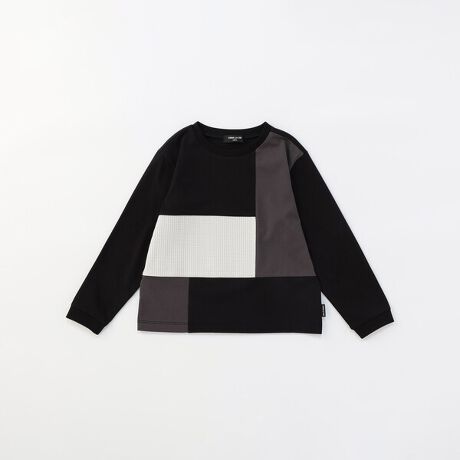 カラーブロック+異素材(ワッフル)切り替えのクルーネックTシャツです。