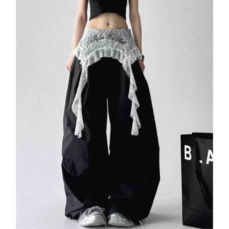 -立体レースが華やかに揺れる個性派ワイドパンツ。旬のモード感を一枚で演出。