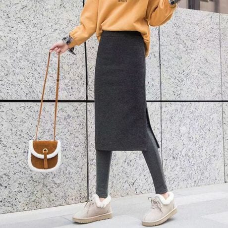 -あったか裏起毛素材で冬のお出かけも快適なレギンス付きスカート