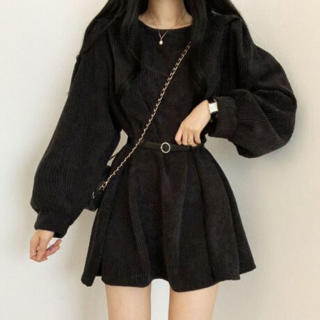 -ふんわり袖が女性らしさを引き立てるコーデュロイワンピース