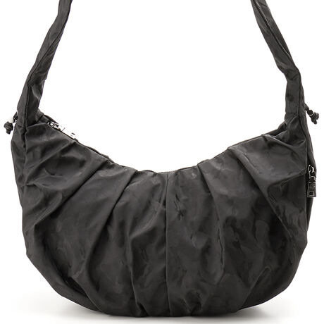 ボディの随所にタックを施し、ハーフムーンのような形なので、お体に沿ってバッグをお持ちいただけ、非常に軽く仕上がっています。