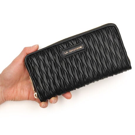 シープレザーの柔らかさを活かしてプリーツ加工を施した、オリジナル性の高いラウンドウォレット。