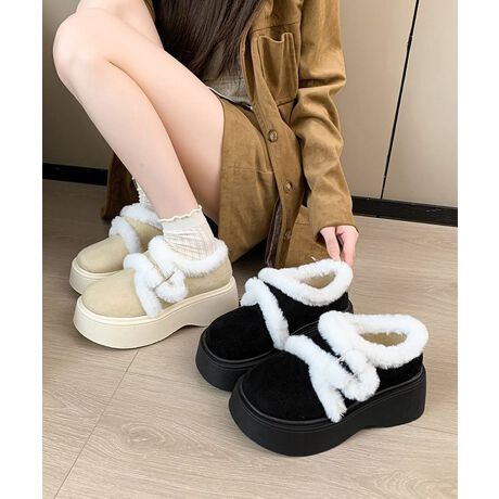 もこもこファーと厚底デザインで、ガーリーに楽しめる冬のあったかシューズ。