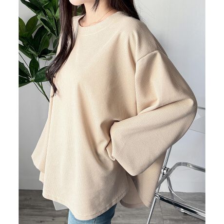 ラウンドネックボリュームスリーブトップス