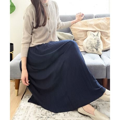 細やかなプリーツが縦ラインを強調し、すっきり見えを叶えてくれます。