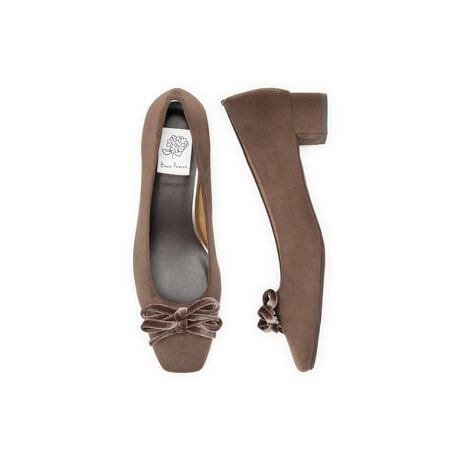 季節感たっぷりのスエード素材に、ベルベットリボンを2つ重ねたデザインが魅力です。