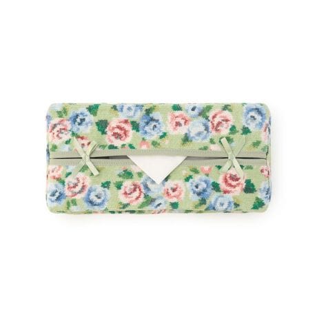 『ノスタルジックノート』のティッシュボックスカバーです。ティッシュ取り出し口の両サイドにある、2つのリボンが上品で愛らしいアクセント。ピンクやブルーの薔薇がシュニール織の風合いと相まって、お部屋をさりげなく引き立てます。テーブルや家具の上に置いて、毎日の生活に取り入れてみてはいかがでしょうか。