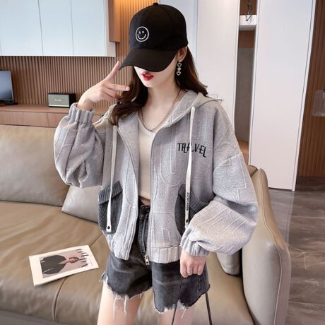 -韓国ストリート風!さりげないロゴデザイン、配色ポケットが映えるジップアップフーディー