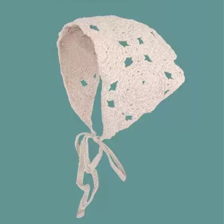 -レトロ感漂うクロシェ編み三角スカーフ風ヘアバンドバブーシュカ