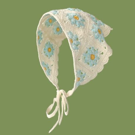 -レトロ感漂うクロシェ編み三角スカーフ風ヘアバンドバブーシュカ