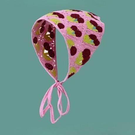-レトロ感漂うクロシェ編み三角スカーフ風ヘアバンドバブーシュカ