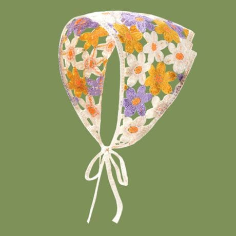 -レトロ感漂うクロシェ編み三角スカーフ風ヘアバンドバブーシュカ