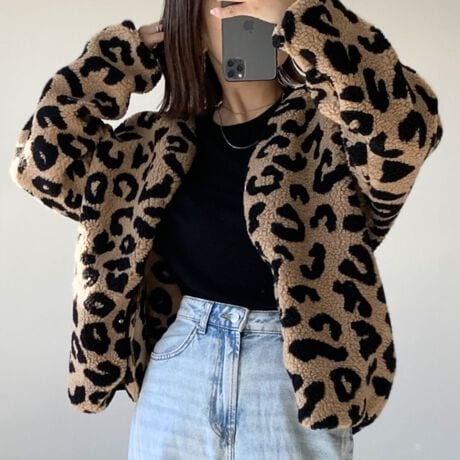 -もこもこ素材で暖かく、存在感あるレオパード柄が魅力