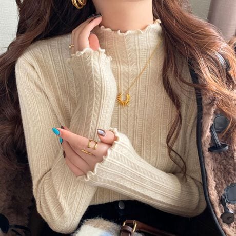 -程よい厚みでレイヤードにも映えるスリム見えニットプルオーバー