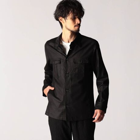 CPOシャツデザインをベースにしたシャツブルゾン。衿の前端にはワイヤーを入れて遊びを効かせ、ウエストをシェイプさせた綺麗なシルエットと、CPOシャツならではWパッチポケットにはBOXプリーツを入れてミリタリー感を強調しています。前裏のみの一重仕様で軽く仕上げています。