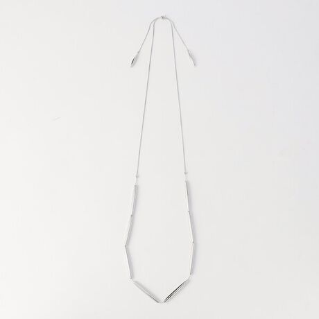 細いチェーンにパイプパーツを通してつくったスライドネックレスです。