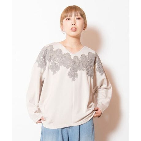 [型番:501006-423T]リピーターも多い人気のカットソーをフェミニンに刷新。顔周りに施されたレースモチーフが華やかさをプラス。===========================透け感: なし伸縮性: あり光沢感: なし裏地: なし素材について: 伸縮性のある、もっちりとした中肉ポンチ===========================