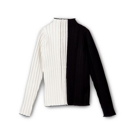大胆なバイカラーや、ほのかに煌めくシアーのコントラストが目を引く。