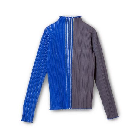 [型番:501240-424K]リーンなシルエットを生み出す変則的なリブニット。大胆なバイカラーや、ほのかに煌めくシアーのコントラストが目を引く。===========================透け感: あり(シアー糸部分伸縮性: あり光沢感: あり(シアー糸)裏地: なし素材について: ハリのあるポリエステルニット 別糸:光沢のあるシアー系===========================