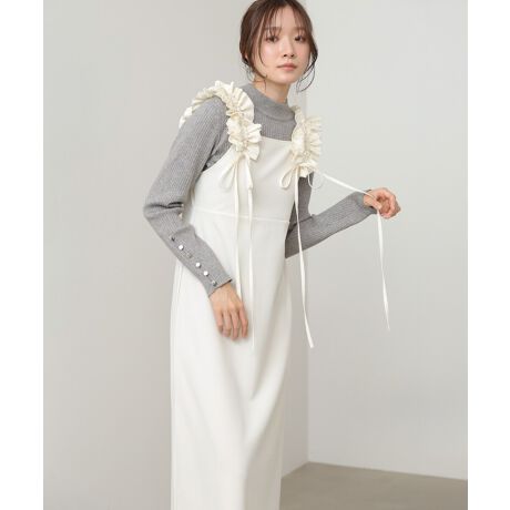 すとんと落ちるストレートシルエットが、体のラインを拾いにくく上品に仕上がるワンピース。ショルダー部分はくしゅっとしたギャザーデザインで、長さ調節が可能なのも嬉しいポイント。程よくデザイン性がありながら、シンプルで洗練された印象に。一枚で完成度の高いスタイルが叶う、きれいめワンピースです。