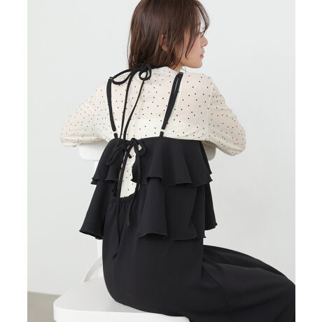 胸元に施したティアードデザインが、さりげなく華やかさを添えるキャミワンピース。甘さを抑えたデザインと、すとんと落ちるシルエットで大人っぽく着こなせる一枚です。落ち感のある素材が縦ラインを強調し、自然とスタイルアップ効果も期待できます。シンプルながらも表情のあるデザインで、幅広いシーンに対応します。