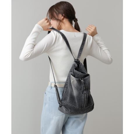 デニム素材の表情を活かした、カジュアルながらも実用性の高い2WAYデニムBAG。ハンドバッグとしても、リュックサックとしても使える2WAY仕様で、シーンやスタイリングに合わせて持ち方を変えられるのが魅力です。程よくラフなデザインながら、立体感のあるシルエットでコーデのアクセントに。デニムならではのこなれ感があり、シンプルな装いにも自然と馴染む万能バッグです。