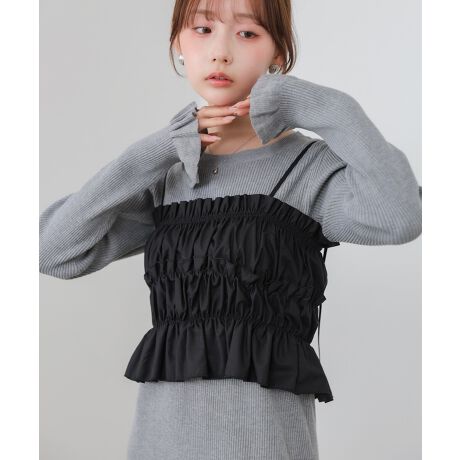 一枚でレイヤードスタイルが完成する、ビスチェ付きニットワンピース。すとんと落ちるニットワンピースに、立体感のあるビスチェを重ねることで、自然とメリハリのあるシルエットに仕上がります。袖のフリルやビスチェの甘さもありながらガーリーさはしっかり抑えたデザインで、大人の女性にも取り入れやすい一着。それぞれ単品使いもでき、着回し力の高さも魅力です。