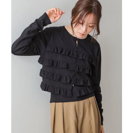 立体感のあるティアードフリルが印象的な、ニットカーディガンと2WAYビスチェのアンサンブル。フリルを贅沢にあしらいながらも、ニット素材ならではの落ち着いた表情で、甘くなりすぎない大人かわいい一着です。カーディガンはフロントボタン仕様で、羽織りとしてもトップスとしても活躍。ビスチェは表情を変えられる2WAYデザインで、スタイリングにさりげない遊び心をプラスします。