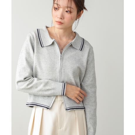 配色ラインがさりげないアクセントになる、今っぽバランスのラインカーディガン。コンパクトな丈感とすっきりしたシルエットで、羽織るだけでスタイルアップが叶います。フロントはジップ仕様なので、開けてラフに、閉めてトップス風にと着こなしの幅も◎グレーとチャコール、どちらも大人っぽく、デイリーに取り入れやすいカラー展開です。