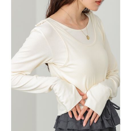 配色パイピングがさりげなく映える、レイヤードが完成するトップス&タンクのSET。シンプルながらも、首元やラインにメリハリがあり、着るだけでこなれた印象に。インナーにはサムホールがついています。タンクトップはボタン付きで長さ調節ができるため、インナーの見せ方を気分やコーデに合わせてアレンジ可能です。裾部分にはギャザーが入っていてこなれ感を演出します。アイボリー・チャコール・ブルーそれぞれに、白の配色が映え、程よく抜け感のある大人カジュアルな雰囲気を楽しめます。