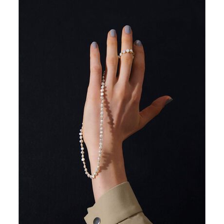 金属ビーズとパールのコントラストが涼しげなネックレスです。