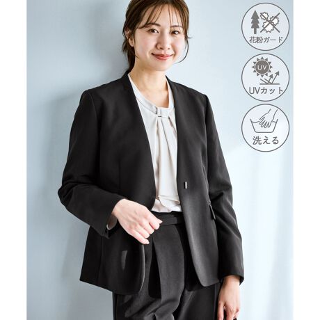 UVカット・花粉ガードの機能素材を搭載したノーラペルジャケット。