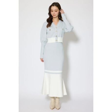 【着用するだけで華やかに、女性らしさを十分に発揮できるカーデセットのニットワンピが登場です】■ポイントバイカラーが目を引く、程よくタイトなシルエットのマーメイドワンピースに、同じくバイカラーで華やかなカーデのセットアイテムです。程よくボディーに添うラインが縦ラインを強調し、美シルエットを演出します。綺麗目のニットワンピースの上に、同じ糸でデザインされた配色のニットカーデを羽織ることで豪華さと華やかさを演出します。配色バランスはカーデとワンピースを着用したときに映えるバランスとカーデとワンピースを別々で着用した際の華やかさ等、デザイナーが細部までとことんこだわった褒められニットワンピースです。■ディテールニットワンピースは、ボディーに程よく寄り添って落ち、女性らしいラインを綺麗に見せてくれます。カーディガンは1枚でも華やかなに見えるような色使いとボタンにしました。■スタイリングワンピースは前後逆にしても着用可能です。合わせる羽織で着方を変化させることができます。カーディガンはカーデトップでも着用可能ですし、ボタンを開いてカーディガンとしても着用可能に。■生地透け感:なし裏 地:なし伸縮性:あり光沢感:なし厚 さ:中肉■商品のお気に入り登録お気に入りアイテムの再入荷・在庫1点などの通知を受け取ることができます。[注意事項]※画像の商品はサンプルです。実際の商品と仕様、加工が若干異なる場合があります。※画像の商品は光の照射や角度、お使いのモニター環境により、実物と色味が異なる場合がございます。※着用、お取り扱いの際は、アテンションタグをご確認ください。