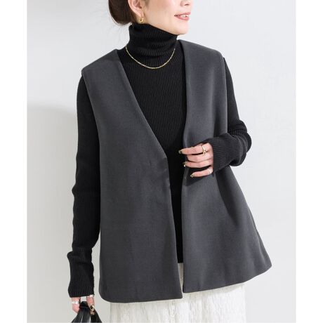 ウールライクな素材を使用したシンプルな着回しの効くジレ。