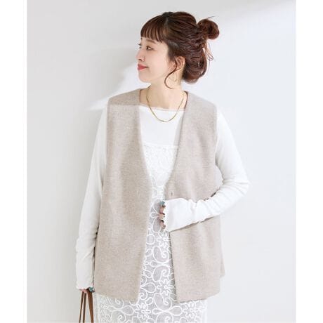 ウールライクな素材を使用したシンプルな着回しの効くジレ。
