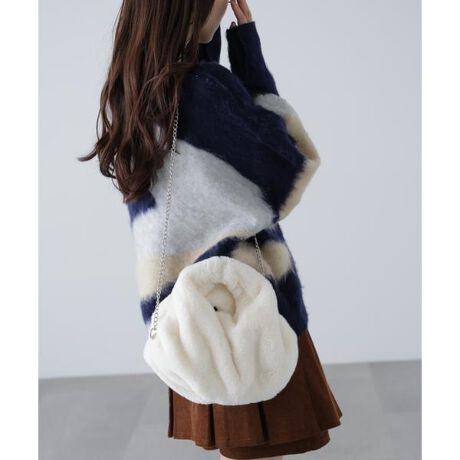 [型番:1315291058]ころんとしたフォルムが可愛らしい今季トレンドのショルダーバッグ。毛足のあるボリュームシルエットに、華奢なチェーンショルダー付きです。馴染みやすいカラーリングなので様々なコーディネートのアクセントにぴったり。寒い時期のオシャレに一つあるとうれしいアイテムです。※モデルの着用画像の場合、光の当たり具合により、実際の色味と異なって見えることがございます。色味は、商品単体の画像をご参照ください。