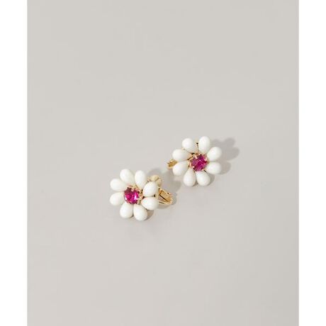 ぷっくりとした白い花びらに、鮮やかなピンクのストーンをセットしたキャッチーなデザイン。