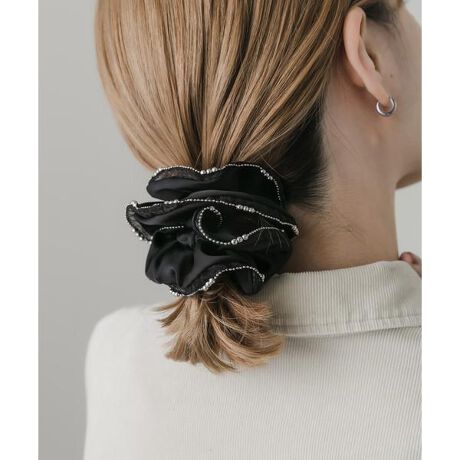 【縁取りチェーンが煌めく大人のボリュームシュシュ】