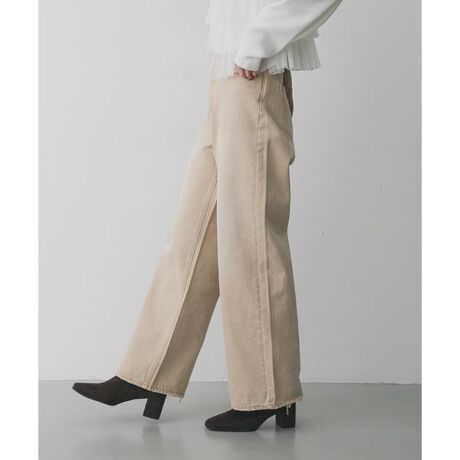 こなれた印象を与えるヴィンテージ風のデニム素材を使用したストレートパンツ。美脚効果にこだわったストレートレッグシルエットが、穿くだけでスタイルアップを叶えます。長めのレッグ丈なので、裾をたるませてずるっと穿くのが、今年らしい抜け感のあるトレンドスタイル。デイリーユースに最適な万能デニムです。