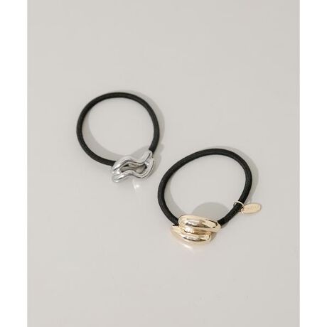 滑らかな曲線を描く、ニュアンスのあるメタルパーツが特徴のヘアゴムを2点セットでご用意。