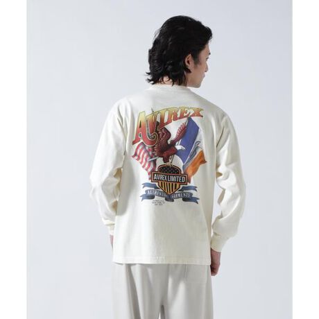・長袖Tシャツ・製品染めで程よい風合いが特徴的・左胸には、オリジナルロゴをプリント・背中には、イーグルとフラッグのグラフィックをプリント・アメリカンヴィンテージの空気感を感じさせるデザイン・3色展開【AVIREX/アヴィレックス】1975年にアメリカ空軍のコントラクターとして創業し、フライトジャケットを供給した事でその認知度を飛躍的に高めた。ミリタリーに起源を持つアヴィレックスは、機能的なデザインが醸し出す特有の美しさに支えられている。その個性的な表情は、映画「インディー・ジョーンズ」「トップガン」「メンフィスベル」などのスクリーンでも活躍し、喝采を浴びた。その無駄の無いデザイン、ノスタルジックな味わいは今なお世界中の多くの人々から支持され続けている。■お使いのパソコンのモニターによって、実物商品とカラーが異なって 見える場合があります。誠に申し訳ございませんが、ご理解下さいます様お願いいたします。■当ショップの在庫数は 直営店舗の商品も含まれています。在庫数が日々変動する為、ご注文頂いた時点で在庫が完売になっている場合がございます。■サイズ表は、製品の生地や織りなどの特性により、多少の誤差はございます。予めご了承ください。■画像の商品はサンプルです。実際の商品では、仕様・加工等若干異なる場合がございます。