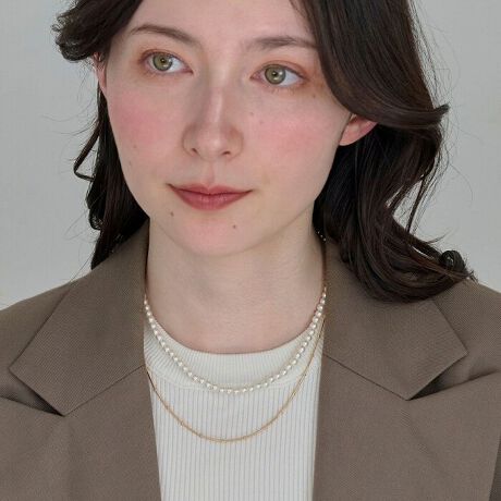 エレガントなパールと華奢なチェーンの組み合わせで、シンプルなコーデもぐっと華やかに。