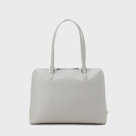 A4サイズの書類を入れてもファスナーが楽に閉じられるように、上部にタックが入り、角がないほどよい丸みでやさしい印象を与えます。