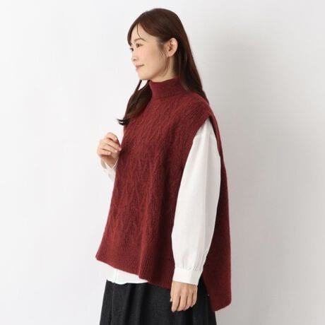 デザイン性の高いケーブル編みがポイントのニットベスト。