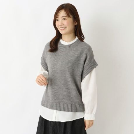 ニットベストと布帛ブラウスがセットになったセットアイテムです。