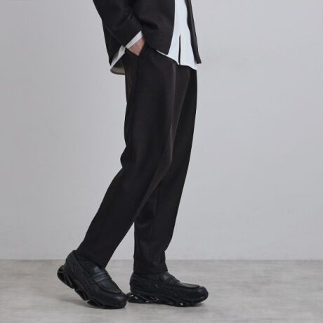 オンオフ問わず活躍する、汎用性の高いワイドテーパードパンツ。