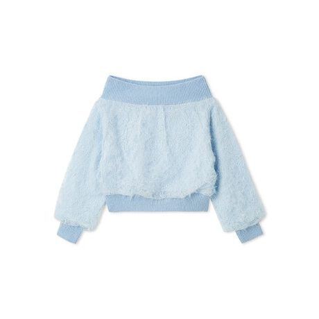 肩のリブがしっかりフィットし、安心して着られるオフショルニットです。