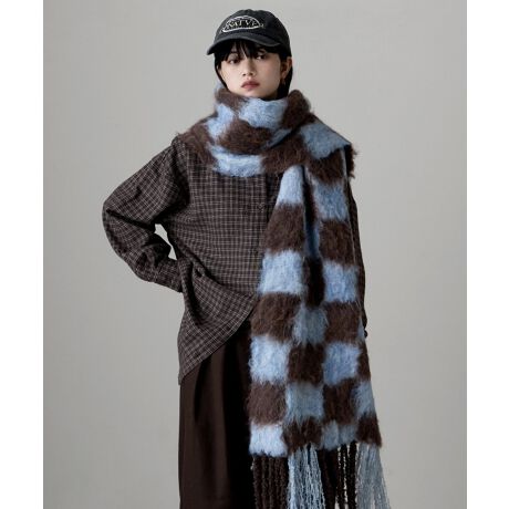 etoll. エトル 顔が埋もれるくらいふわりとした素材感で、主役級の存在感を発揮してくれるチェッカーボードマフラー。